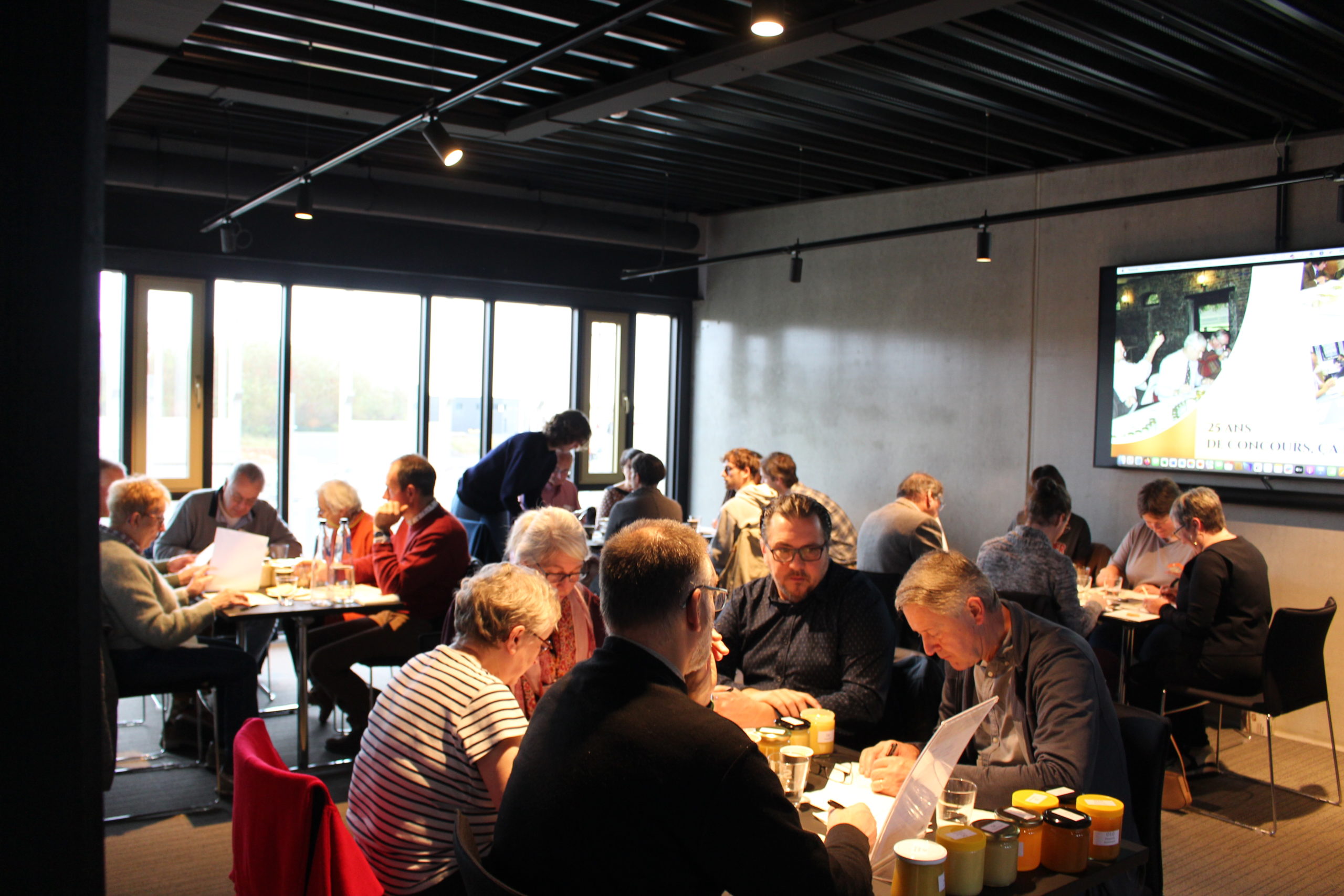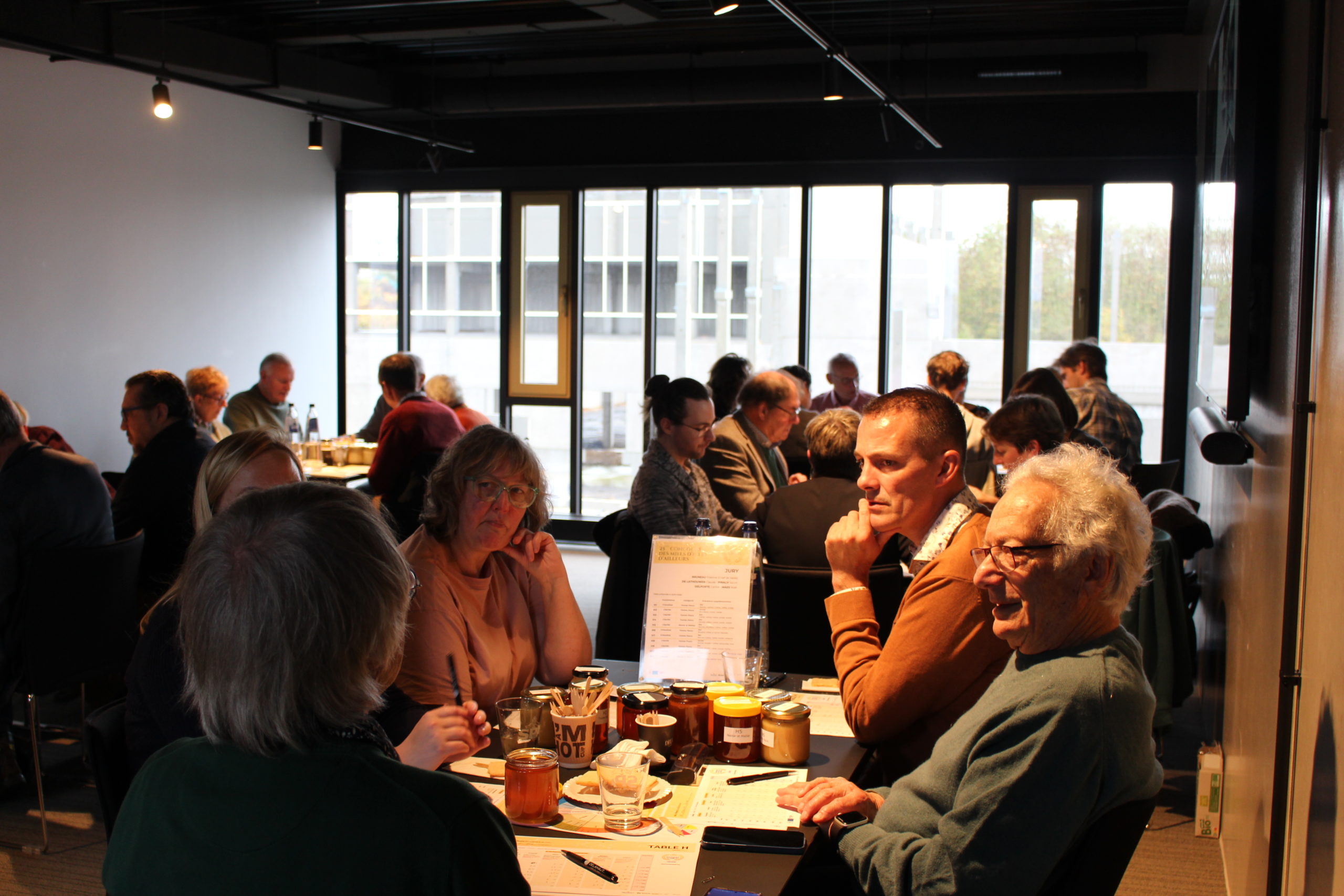 Cette année, notre traditionnel concours s’est déroulé au Restaurant Cafés Delahaut. Dans ce lieu d’exception, une cinquantaine de personnes se sont réunies ce samedi 25 octobre pour procéder à la dégustation de 106 miels inscrits au concours. Vous l’attendiez tous avec impatience, voici le palmarès de cette édition 2025 !